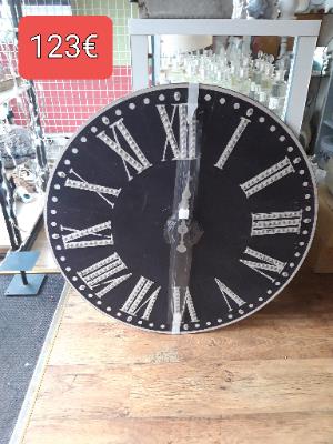 Horloge XXL : chiffres romains coutés : Du caractère pour cette horloge ! Idéale dans une pièce avec un vide sur séjour pour combler les grandes hauteurs sous faitage . Conviendra dans une maison contemporaine mais aussi très bien dans une grange réaménagée avec style décalé ! un cadeau magistralement utile et décoratif !