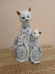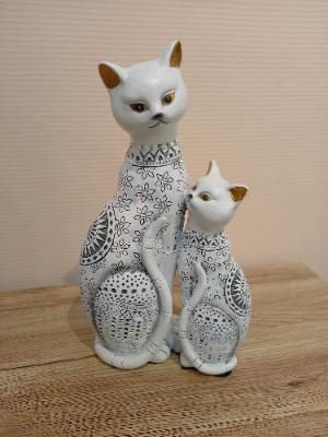 La chatte et son petit. En résine blanc et noir facile à intégrer à toute ambiance