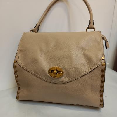 Sac forme enveloppe. Clouté sur les surpiqures latérales. 1 séparation centrale. Bandoullière amovible.