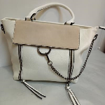 sac blanc et écru. 1 pochette intérieure 2 anses et 1 bandoulière amovible.