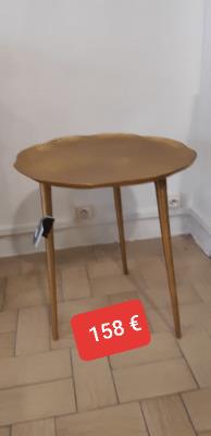 Petite selette en métal. Son plateau est nervuré représent une feuille. De coloris doré C'est le must have pour donner un espris chic et naturel