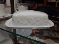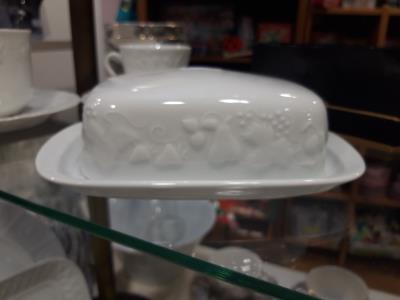 beurrier en porcelaine blanche de fabrication française. Modèle CALIFORNIA. Farandole de fruits