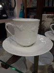 Tasse à café en porcelaine blanche de fabrication française. Modèle CALIFORNIA ; Farandole de fruits