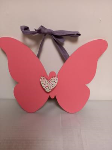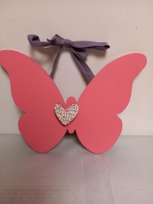 Papillon en bois à suspendre. Deiière le coeur se trouve une mini pince pour accrocher une photo