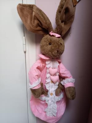 Porte-pyjamas Vichy rose. Fermeture par scratch sur le devant