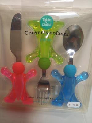 Couverts enfant marque AMEFA. Ludiques les couverts peuvent tenir debout sur la table. Les couverts s'enclenchent dans les personnages.