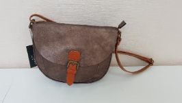 Besace demi lune avec patte de fermeture façon ceinture.