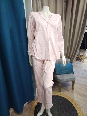 Pyjama 100% coton rose/gris, encolure en V, pantalon taille élastiquée et jambes droites de la marque Le Chat