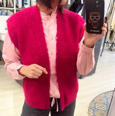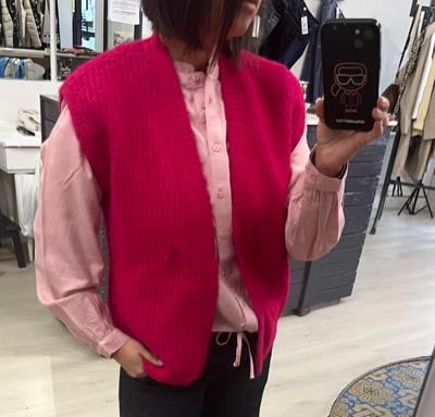Ce gilet sans manches fuchsia vous donnera du peps ! On n’hésite pas à l’assortir avec un chemisier rose ou même du rouge, pour un effet wahouuuu . Prix : 69,99 € TTC