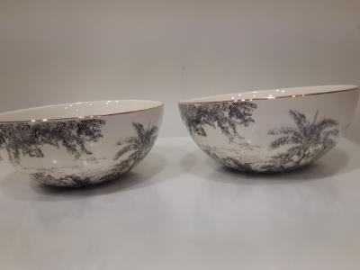 coupelle en ceramique . Impression sepia jungle. Liseré doré