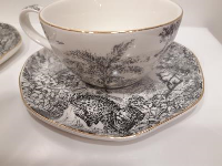 tasse à café en céramqiue. Motif sepia jungle. Liseré doré